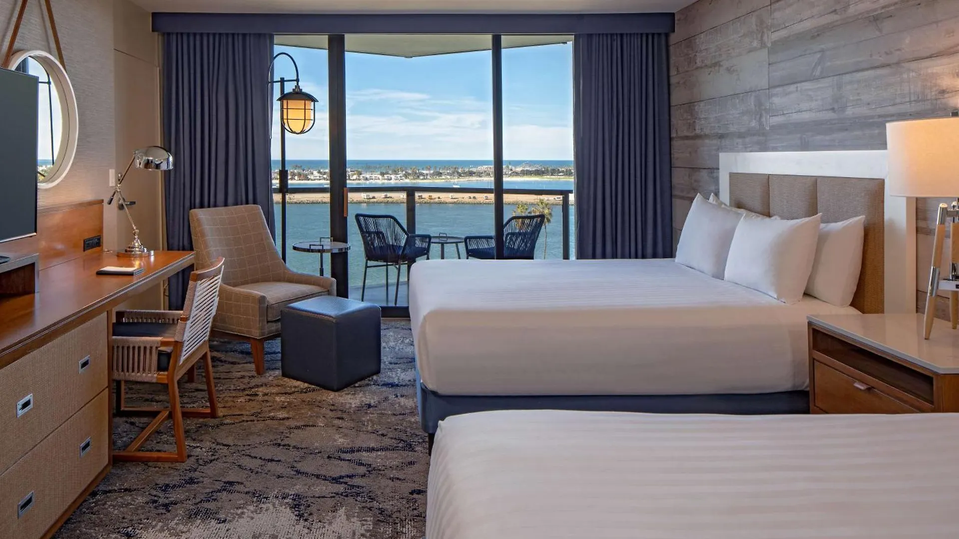 There are 430 rooms at this San Diego hotel, each of them has an iron with ironing board and an air conditioner, as well as entertainment amenities such as a cable TV with on-demand films and pay-per-view channels. They are appointed with a writing table, and also feature coffee/tea making facilities. You can enjoy views of the marina.